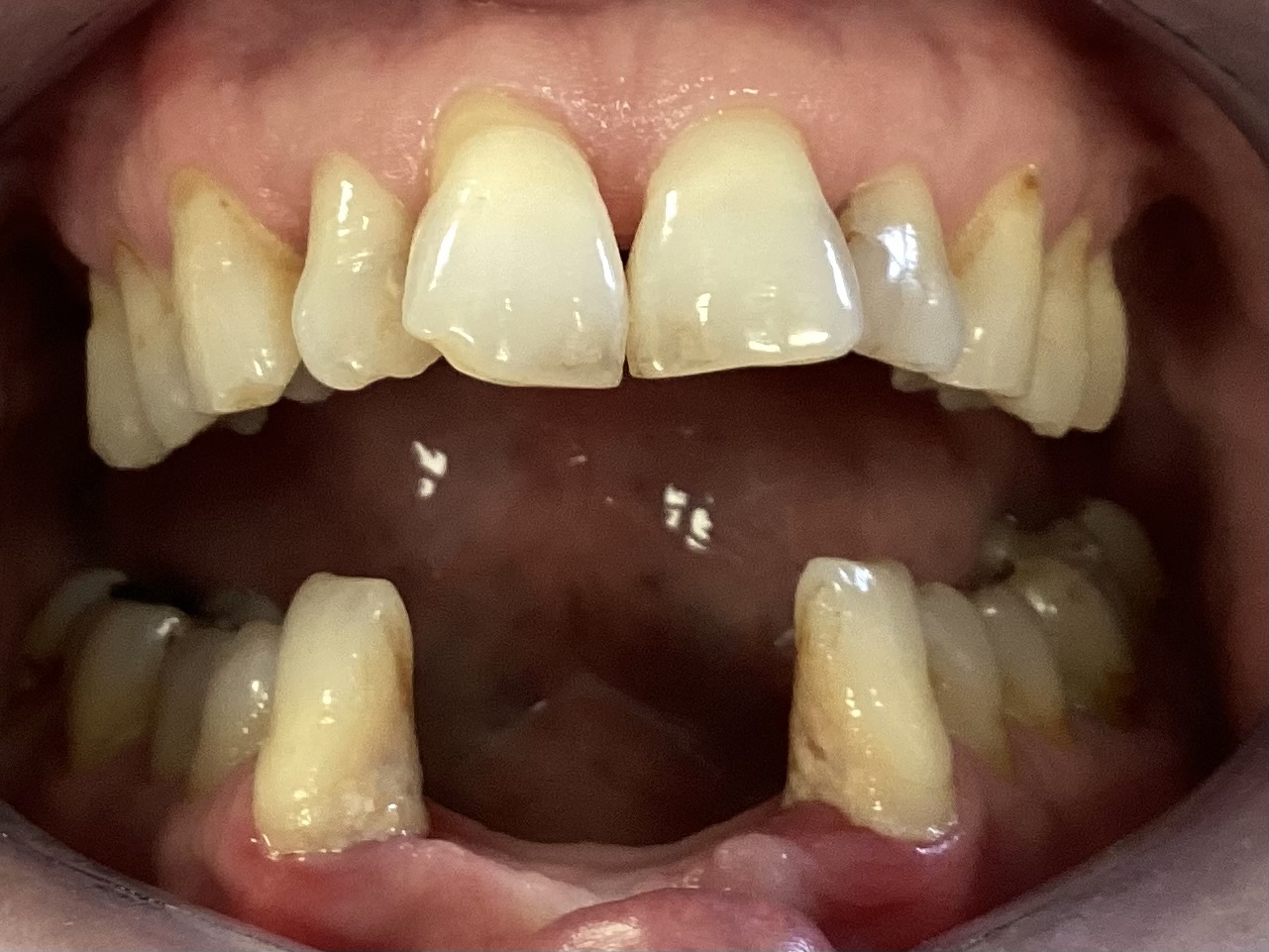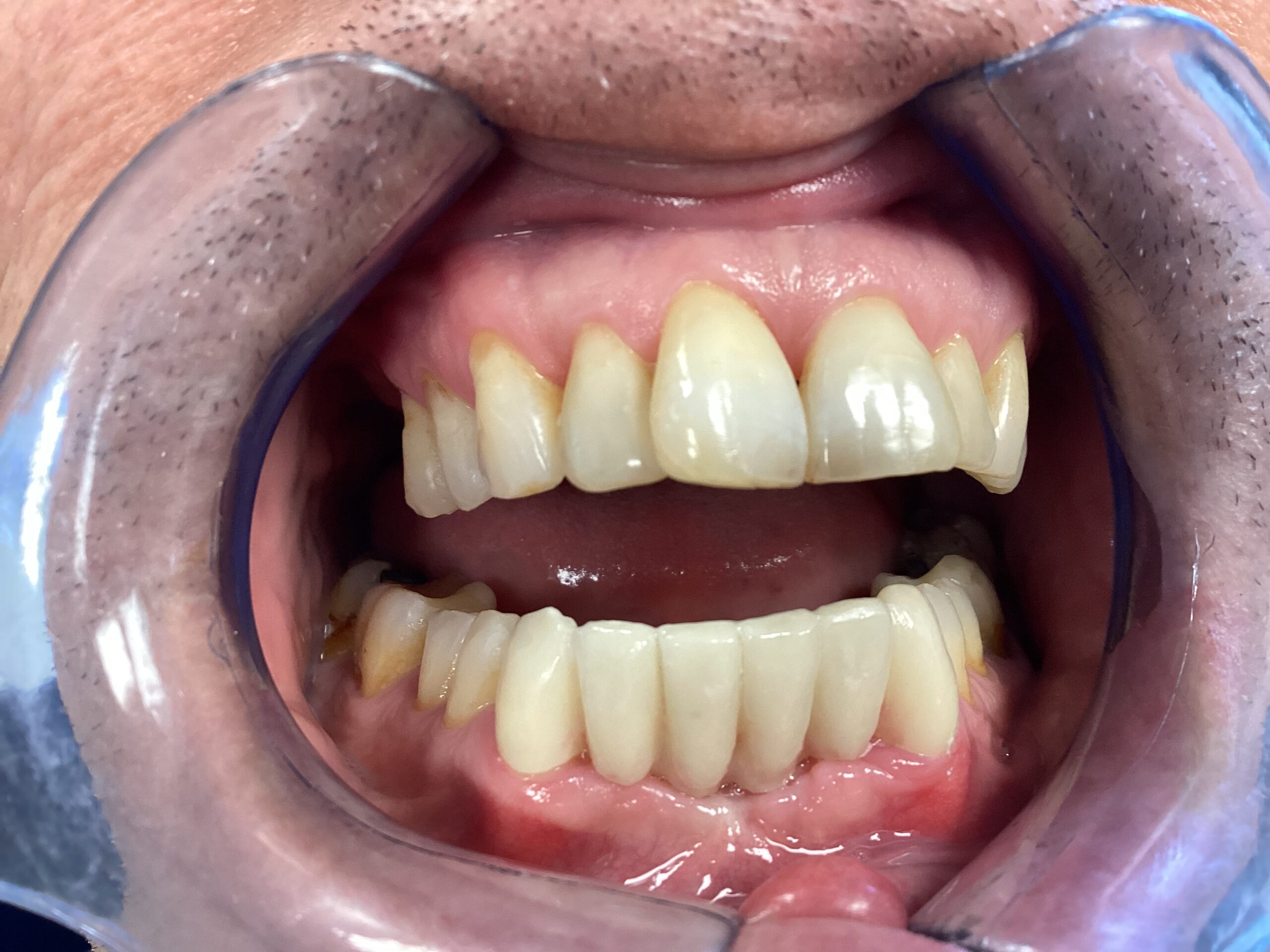 The patient was delighted with the result and was able to do away with his partial denture.