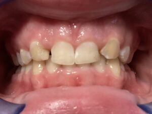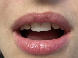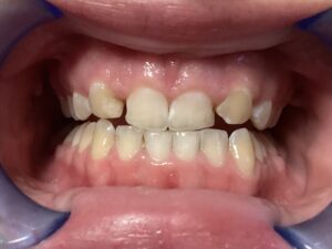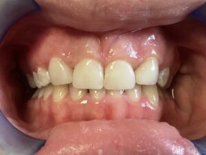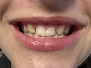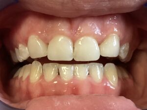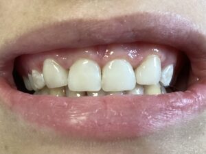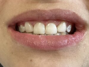 This patient arrived at my practice last week with 2 congenitally missing laterals incisors. Her orthodontist moved the canines into the position of the lateral incisors to fill the gaps but canines don’t look like incisors. They are pointy and “fat” so I told them upfront that although perfect aesthetics will not be achieved we can greatly improve the look and also remove the decay. The procedure required a single 2hr appointment and a very pleasing result was achieved with a very happy teenager leaving the practice that day. Further improvements can be done at a next visit by removing the white spots on the first premolars.